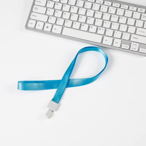 Шнурок для бейджа блакитний 15 мм з пластиковою кліпсою